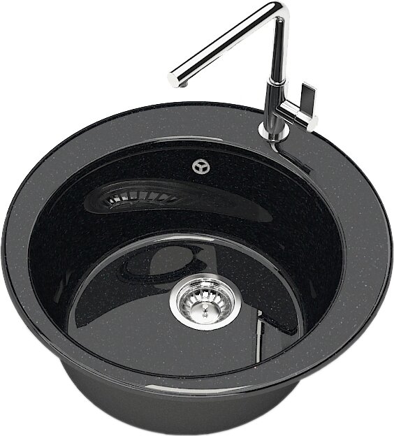 Мойка кухонная из камня MARRBAXX Виктори Z30Q4, d=475 мм, глубина 18 см, глянцевая, черная 4425200 .