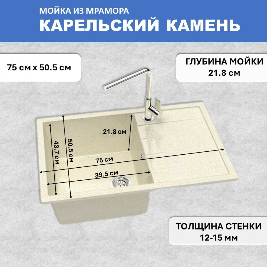 Мойка для кухни Marrbaxx Джоли Z161 75х50,5 гранит глянец бежевый Z161Q002 7 200 ₽ Подробнее