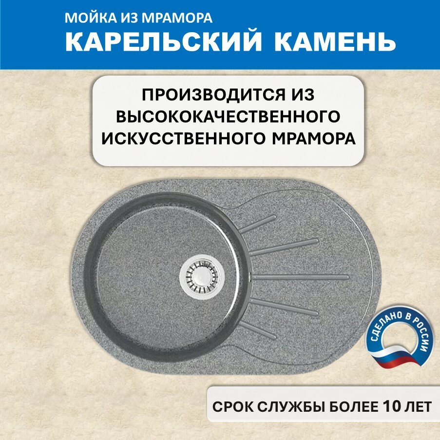 Кухонная мойка Карельский камень модель 110 (730*450) Q10 Светло-серый