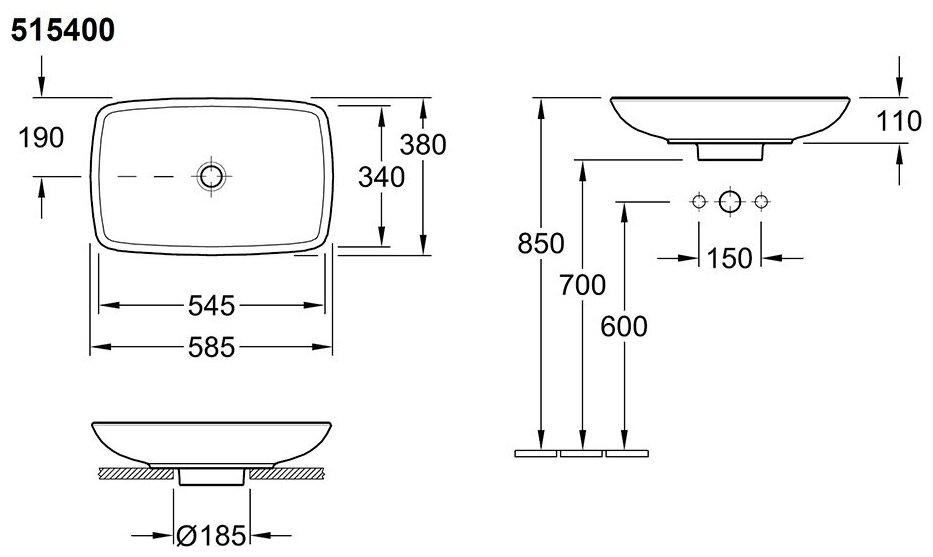 Лучшие цены. Накладная раковина Villeroy&Boch из коллекции Loop&Friends габариты (шгв): 58,5x38x15 см фарфоровая клапан с керамической крышкой удлиненный стержень для механизма слива "pop-up" устанавливается на столешницу без готовых отверстий под смеситель диаметр слива: 4.5 см крепеж. Магазины в вашем городе.