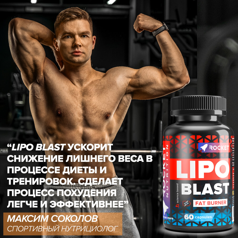 Сжигатели жира Жиросжигатель для похудения LipoBlast, 60 капсул. Хром, Холин, Йохимбин, DMAE. Rocket Nutrition