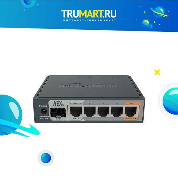 Коммутаторы Роутер MikroTik hEX S черный (rb760igs)