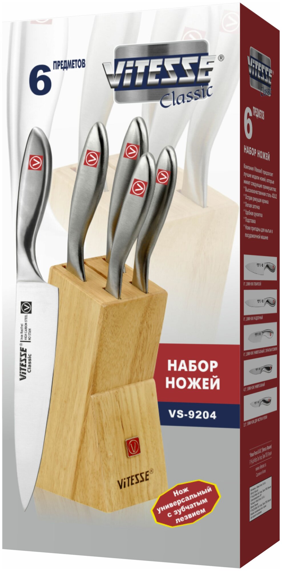 Лучшие цены. Набор кухонных ножей Vitesse VS-9204. Магазины в вашем городе.