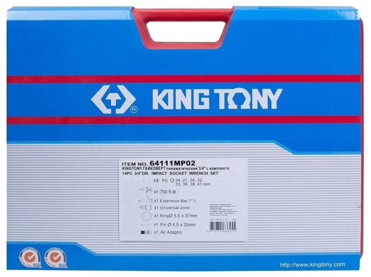 Дрель/шуруповерт Гайковерт пневматический ударный 3/4", 1085 Нм, с комплектом головок, 14 предметов KING TONY 64111MP02
