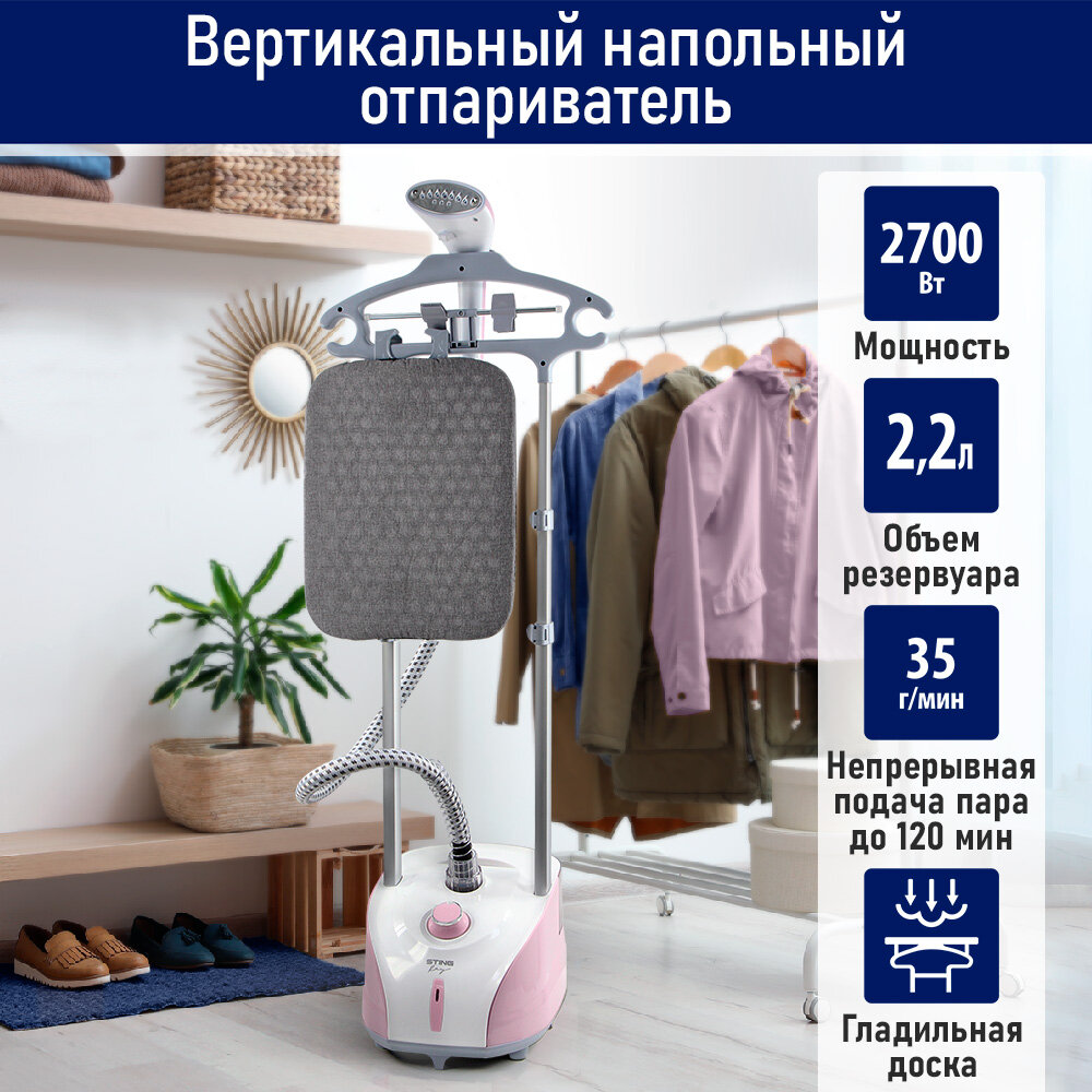 Отпариватели одежды Вертикальный напольный отпариватель STINGRAY ST-ST300A белый/розовый