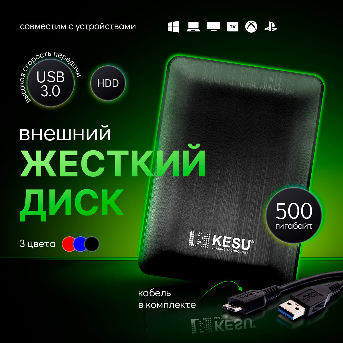 SSD-накопители Внешний жесткий диск KESU 500ГБ, переносной HDD накопитель информации для PS4, PS5, XBOX X, XBOX S, съемный хард диск для пк/ноутбука/консоли, черный