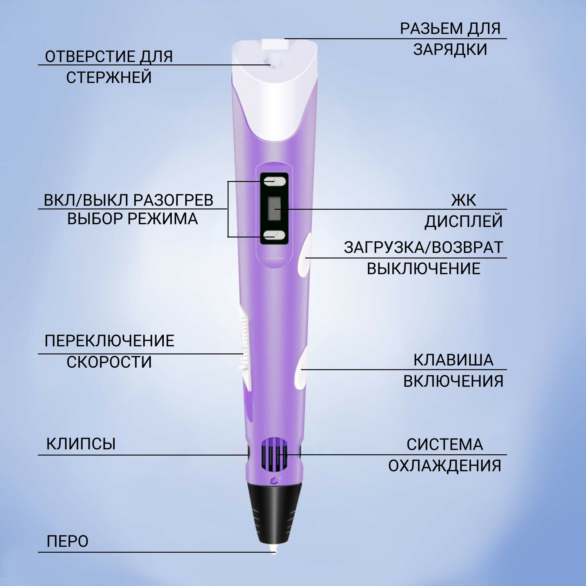 3D ручки 3D -ручка, PEN- 2/ 3D ручка для творчества/ набор пластика в подарок/ручка для рисования/фиолетовый/