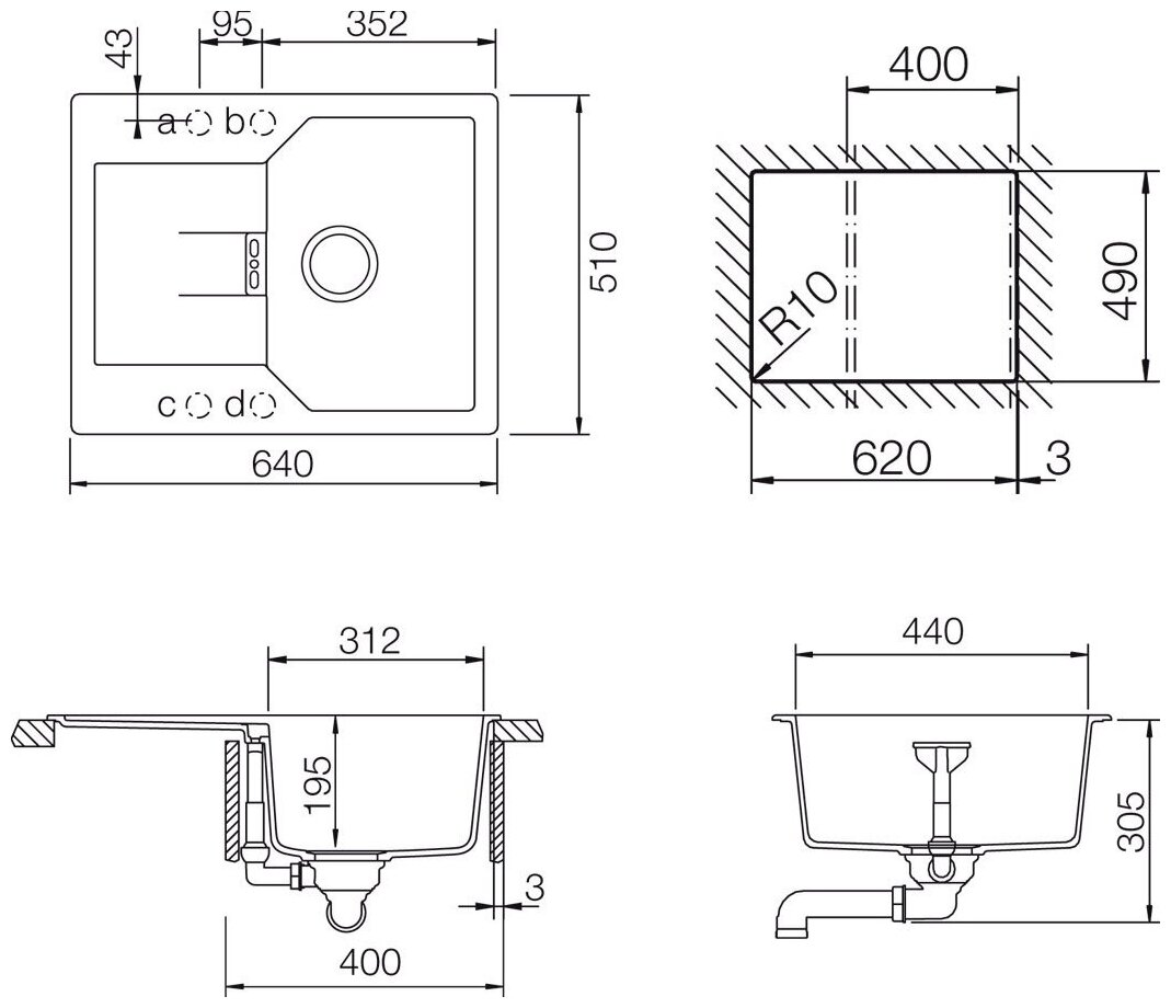 | Размеры врезного отверстия (накладная) | 760x480 мм |