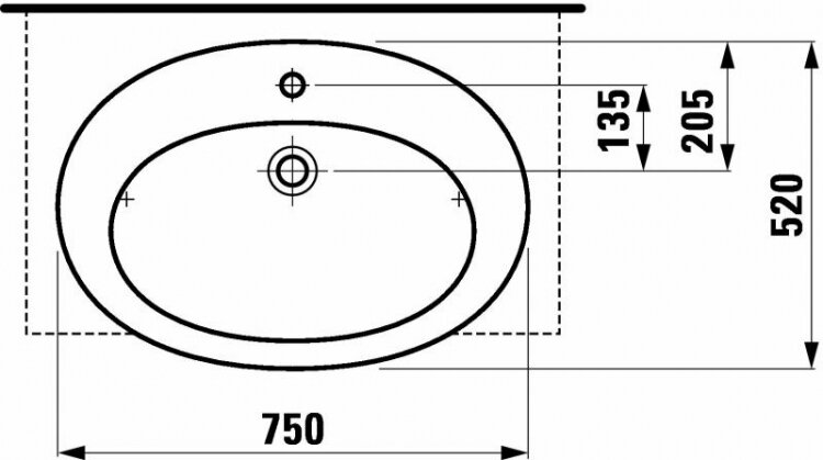 Накладная раковина Laufen Ilbagnoalessi one 75х52х9см, арт. 8.1897.2.400.104.1, санфарфор, с отв. под смеситель, с покрытием lcc 147 190 ₽ Подробнее