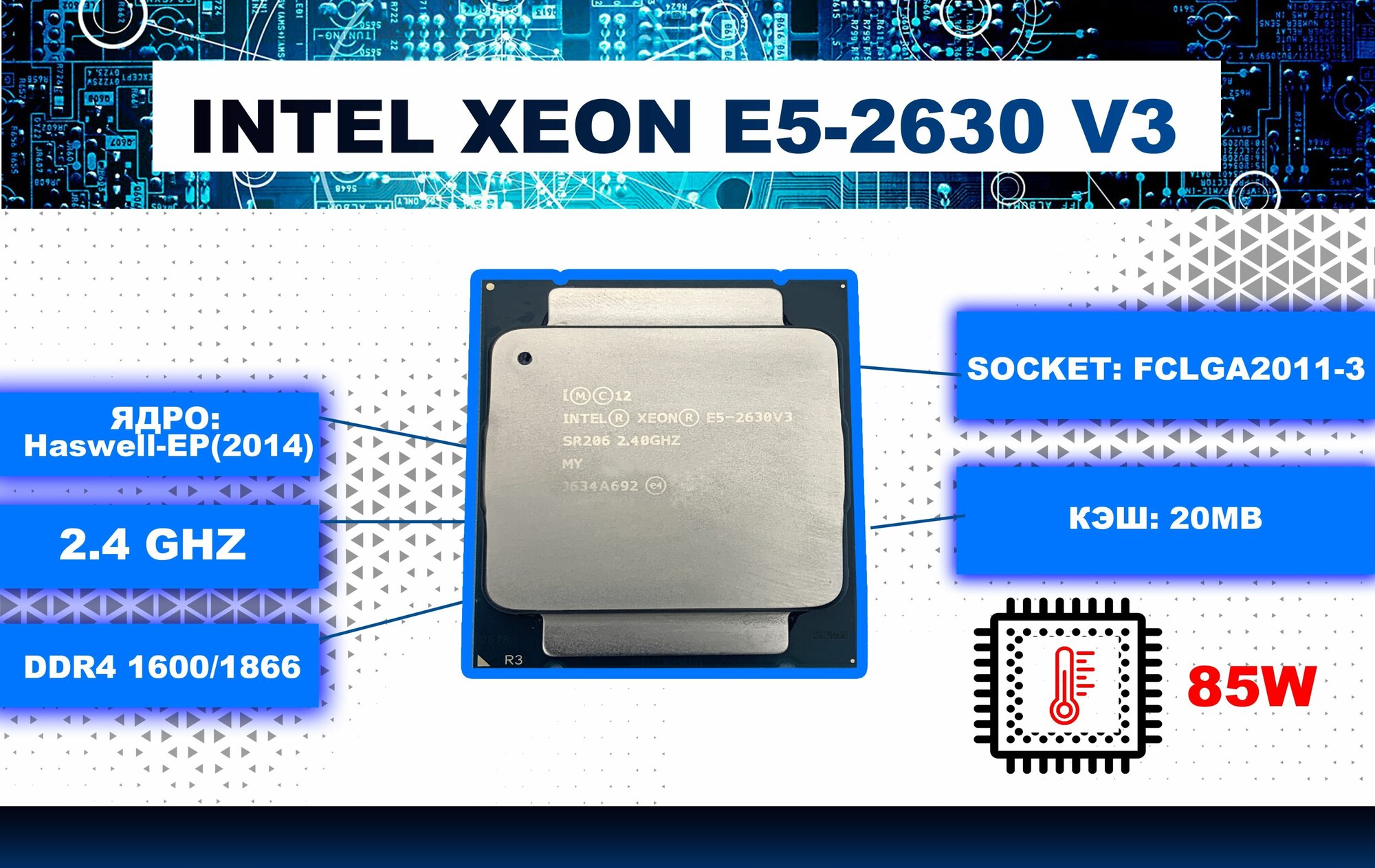 S2011-3 Intel Xeon E5-2630 v3 2,4-3,2GHz, 8 ядер, 16 потоков, 20mb, TDP 85W, FSB 1866MHz