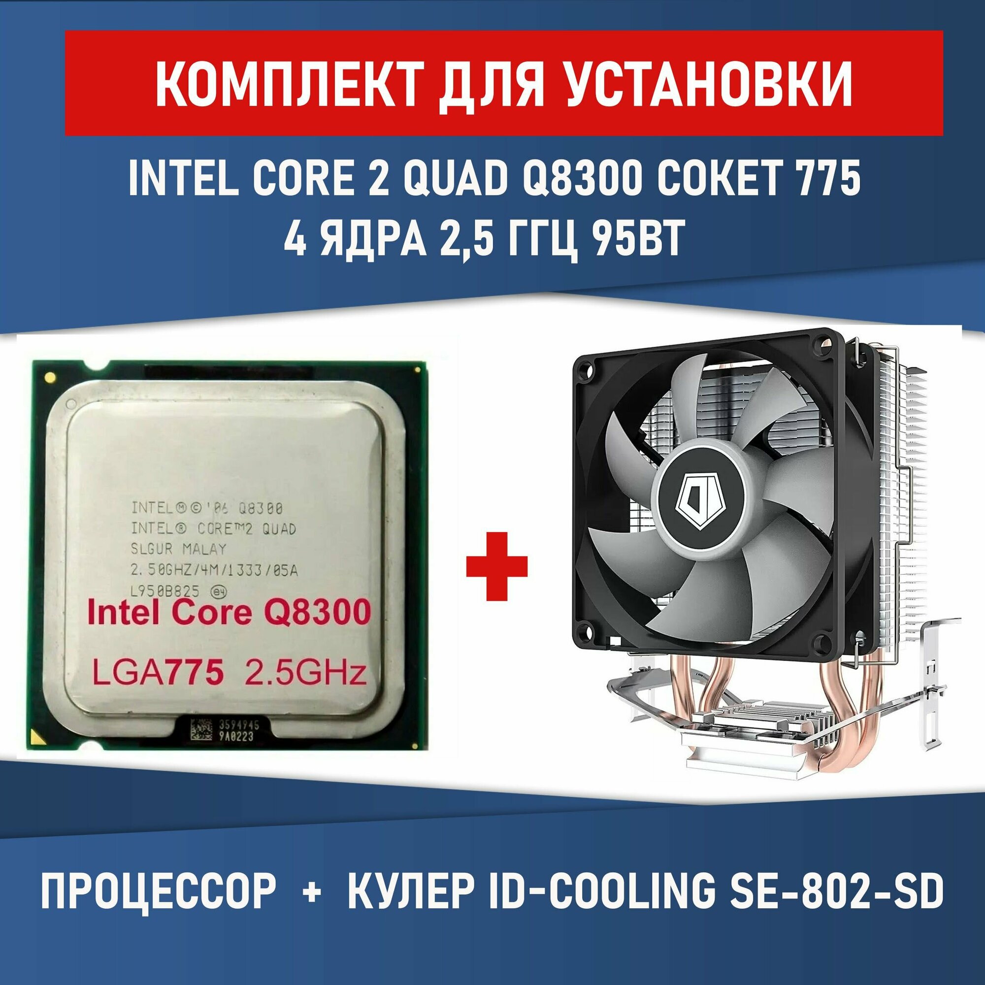 Процессор Комплект для установки Процессор Intel Core 2 Quad Q8300 сокет 775 4 ядра 2,5 ГГц + Кулер ID-COOLING SE-802-SD V3