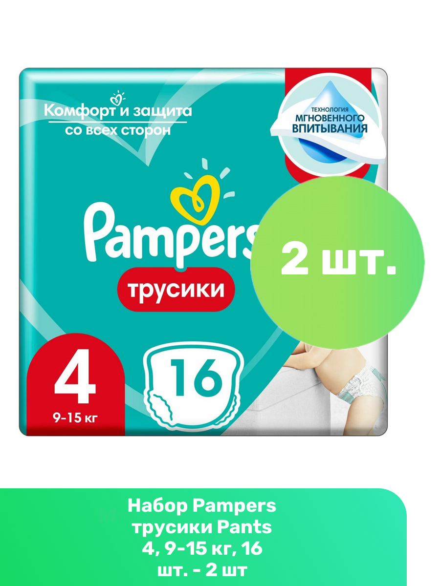 Подгузники (памперсы) Pampers Подгузники-трусики, Pants, 9-15 кг, 16 шт/уп, 2 уп