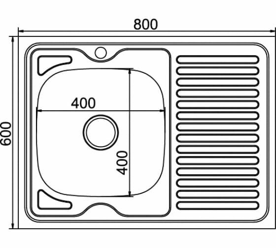 Накладная кухонная мойка Mixline из нержавеющей стали прямоугольная 60х80 см выпуск 3 1/2 глубина 16 см крыло правое