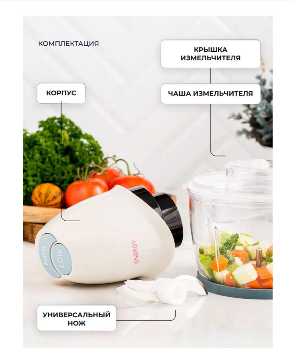 Измельчитель для овощей Energy EN-269, объем 1л, 200Вт, 2 скорости 1 566 ₽ Подробнее