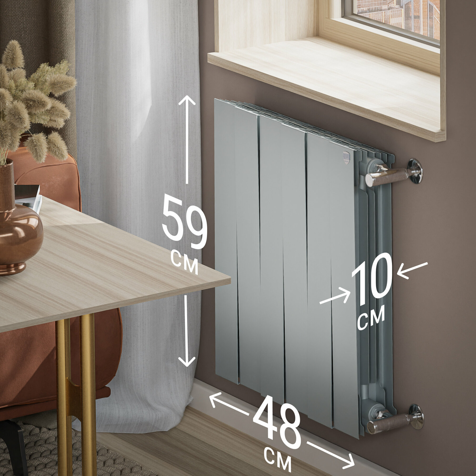 Радиатор биметалл, 500х100 мм, Royal Thermo, PianoForte/Silver Satin, 8 секций, НС-1093828