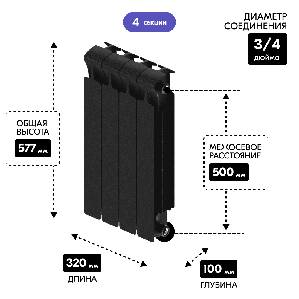 Rifar Monolit 500 - 4 секции, цвет Титан (серый) боковое подключение 7 280 ₽ Подробнее