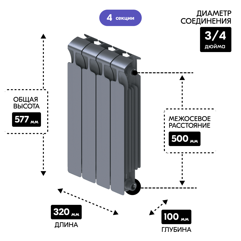 | Толщина радиатора | 250 мм |