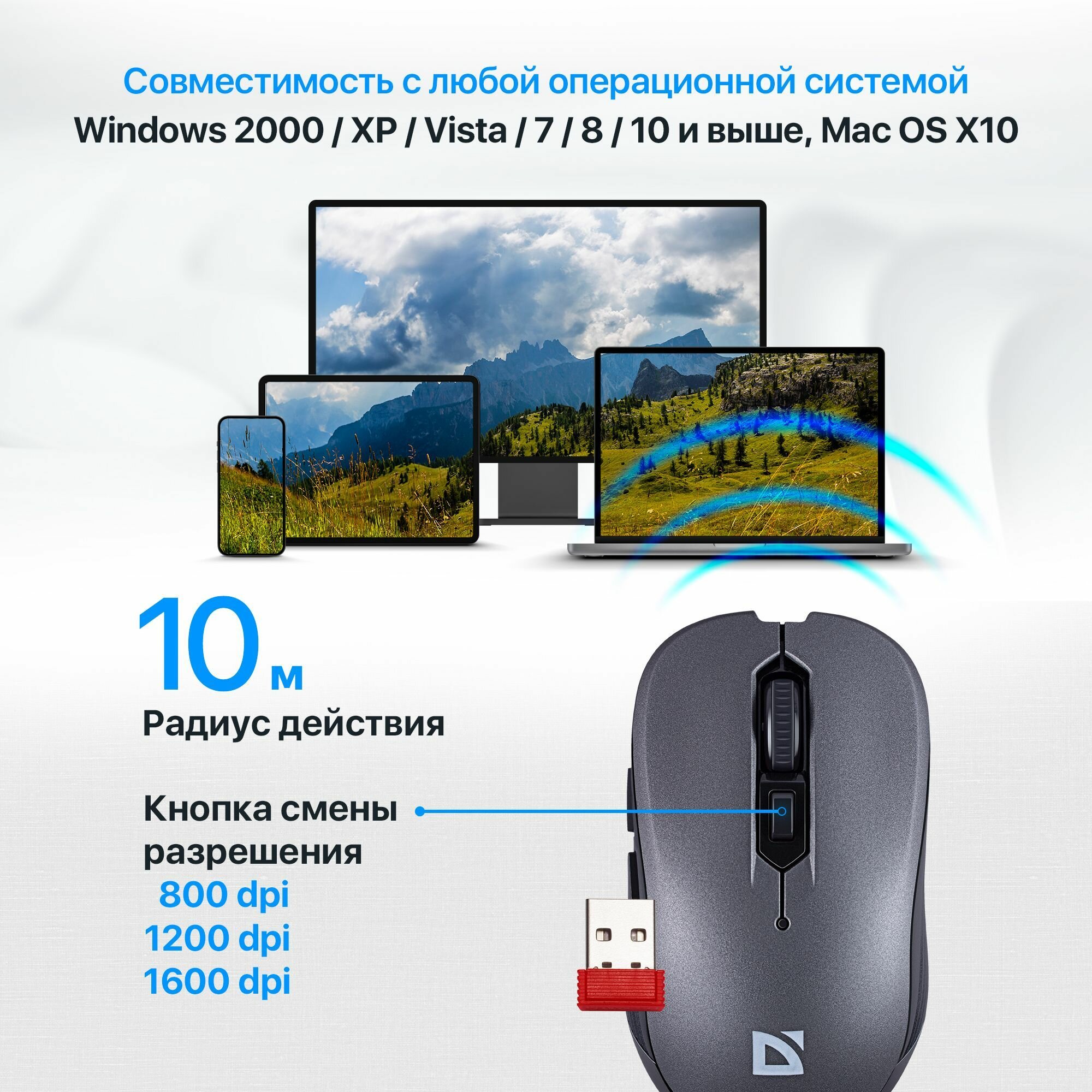 Беспроводная оптическая мышь Defender Gassa MM-105, серая. 600 ₽ Подробнее