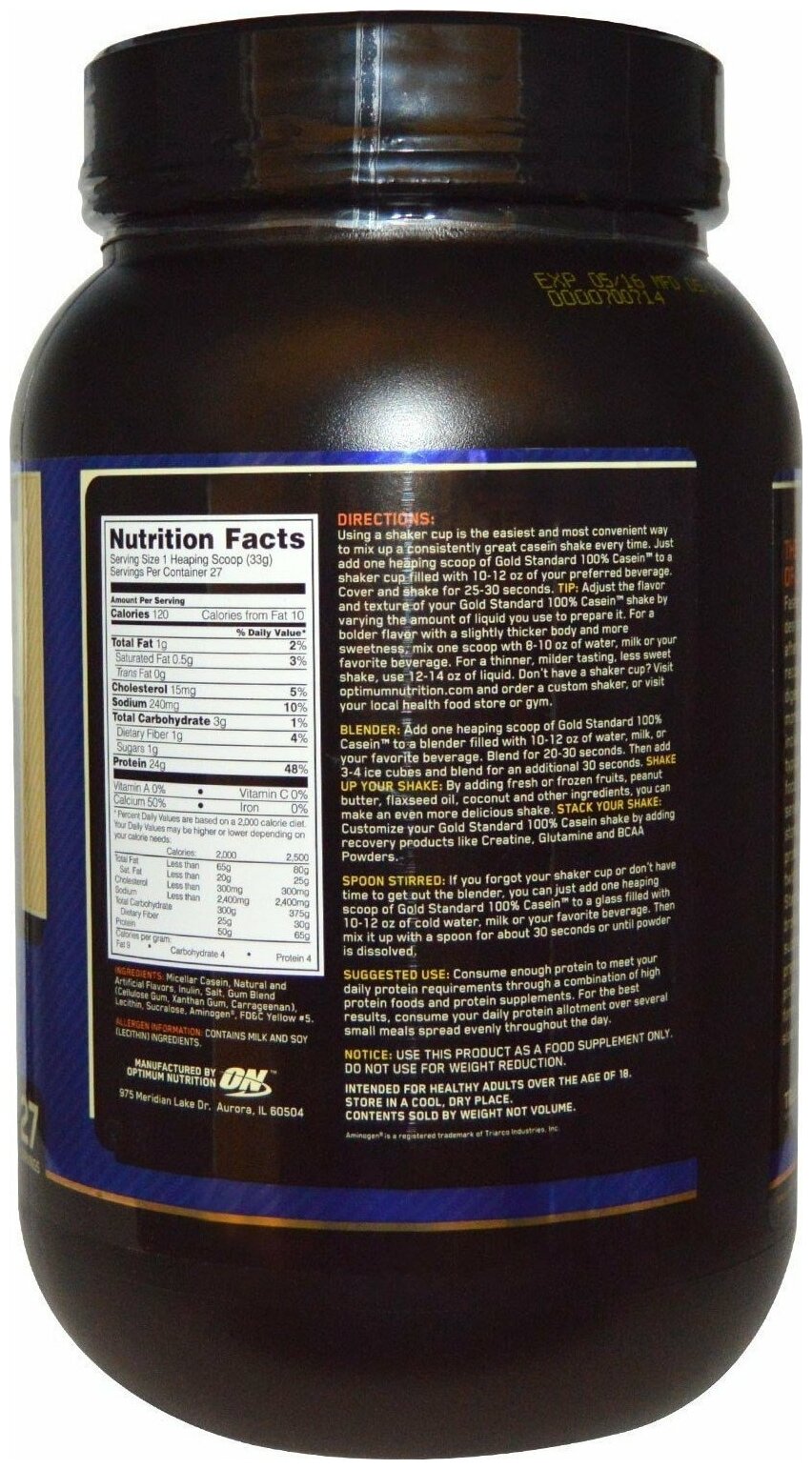 Протеин Optimum Nutrition Gold Standard 100% Casein 2 lb Chocolate Supreme