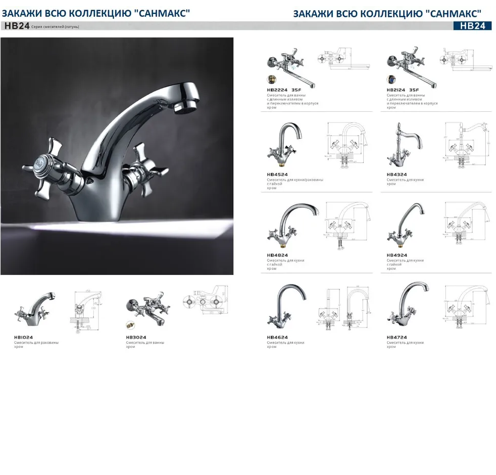 Смеситель HB1024 для раковины с гайкой хром 2 800 ₽ Подробнее