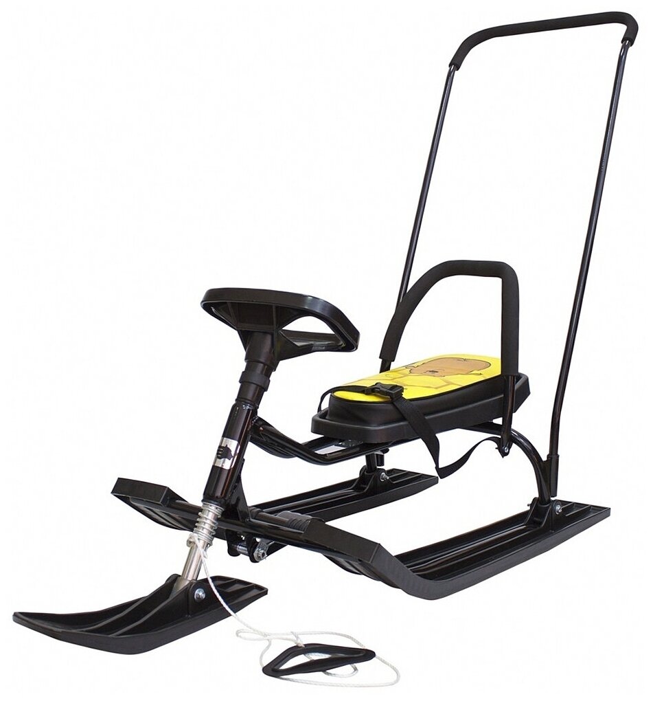 | Оснащение | спинкарулевое управлениебуксирный шнурручка-толкательтормозсистема амортизацииремень безопасности |