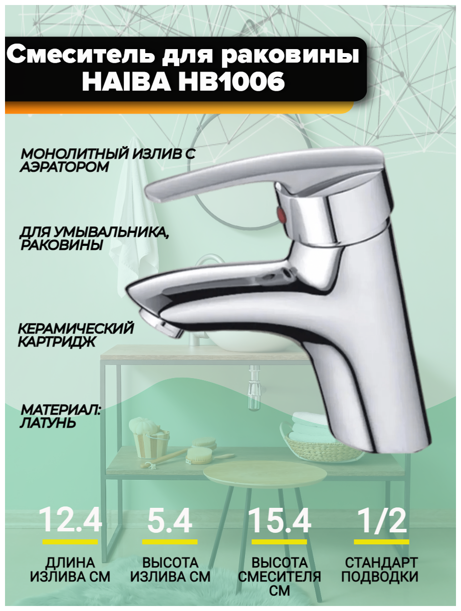 Смеситель для раковины Haiba HB1006, хром 4 994 ₽ Подробнее