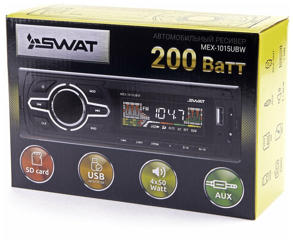 Автомагнитола SWAT MEX-1015UBW /1 din,4х50 вт,MP3,USB,SD бел.кнопки/, SWATMEX1015UBW SWAT SWAT MEX-1015UBW