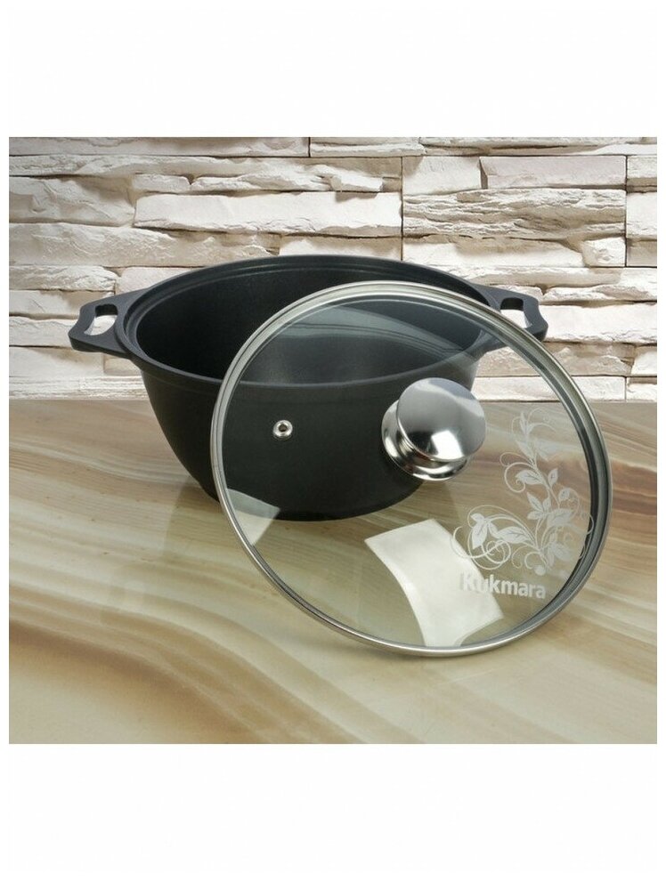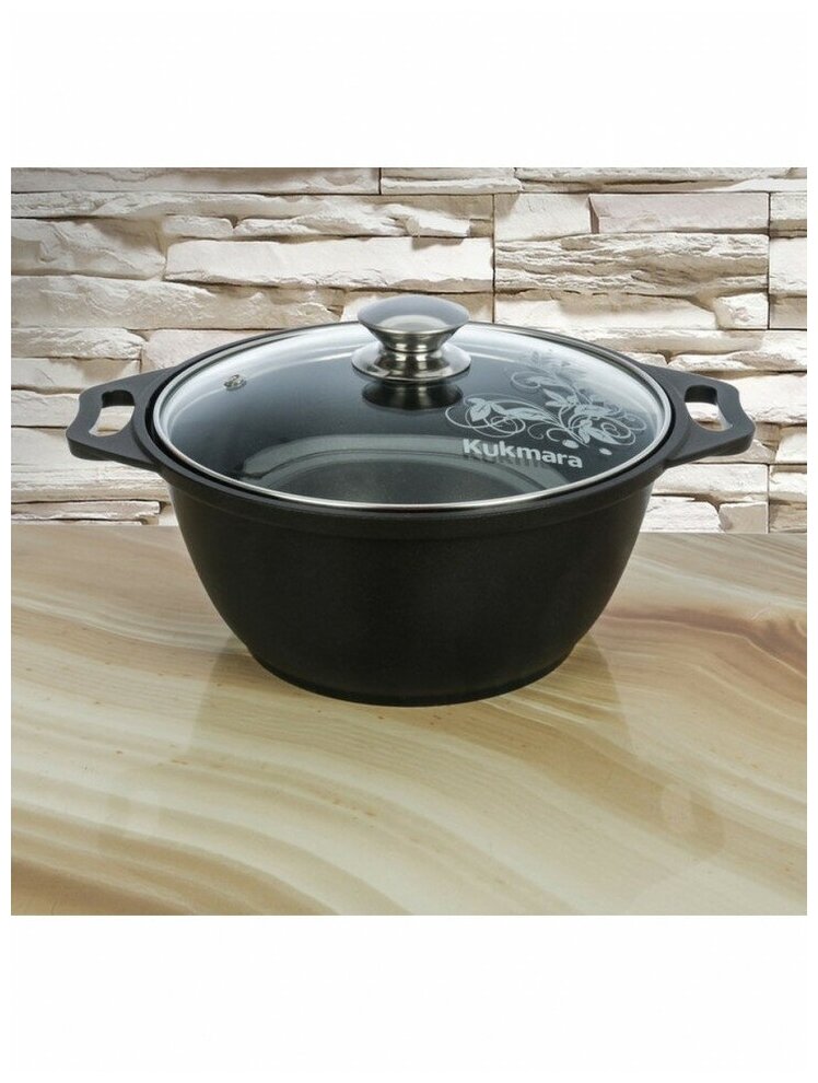 Кастрюля Kukmara 2 л с антипригарным покрытием, литой алюминий, стеклянная крышка 20см, черная, к22а