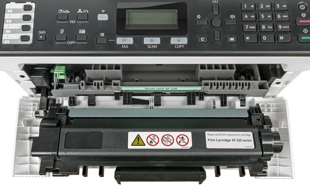 МФУ Ricoh SP 230SFNw МФУ, A4, 256Мб, 30стр/мин, GDI, дуплекс, ADF50, факс, LCD-экран, LAN, WiFi, старт.картр.700стр (408293)