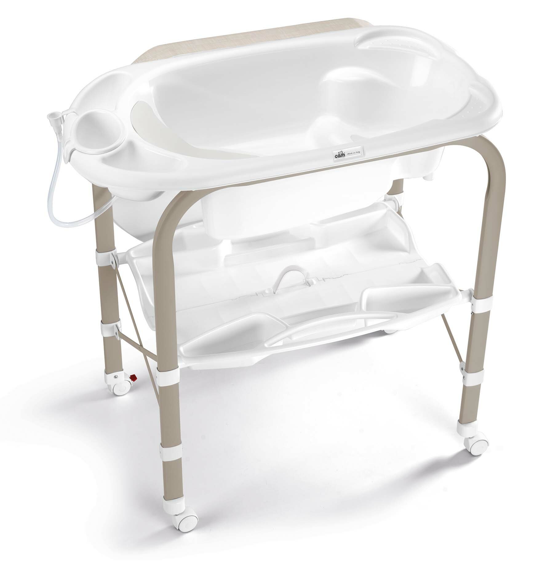 Пеленальный стол Cam Cambio с ванночкой под съемным матрасиком, нижняя полка, отделение для бутылочек, место под губку и мыло