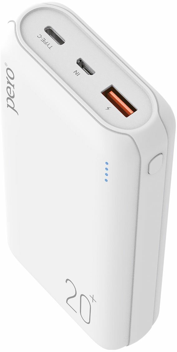 Powerbank аккумулятор PERO PB04 20000 mAh, Li-Pol, output USB-C PD + USB-A QC 3.0, 3A white (Белый)