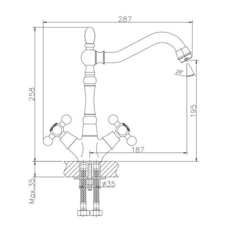 Лучшие цены. Артикул: HB4419-4 Тип: смеситель Материал: латунь Ширина, см: 17,9 Глубина, см: 22,7 Высота, см: 25,8 Область применения: бытовая Стилистика дизайна: ретро Цвет: бронза Страна: Китай Назначение: для кухни Форма: округлая Управление: вентильное Монтаж: на мойку, на столешницу Поверхность: матовая Механизм: керамическая кран-букса Стандарт подводки: 1/2" Состав комплекта: смеситель, подводка Отверстия для монтажа: 1 отверстие Вращение излива: поворотный Длина излива, см: 18,7 Высота излива, см: 19,5 Тип. Магазины в вашем городе.