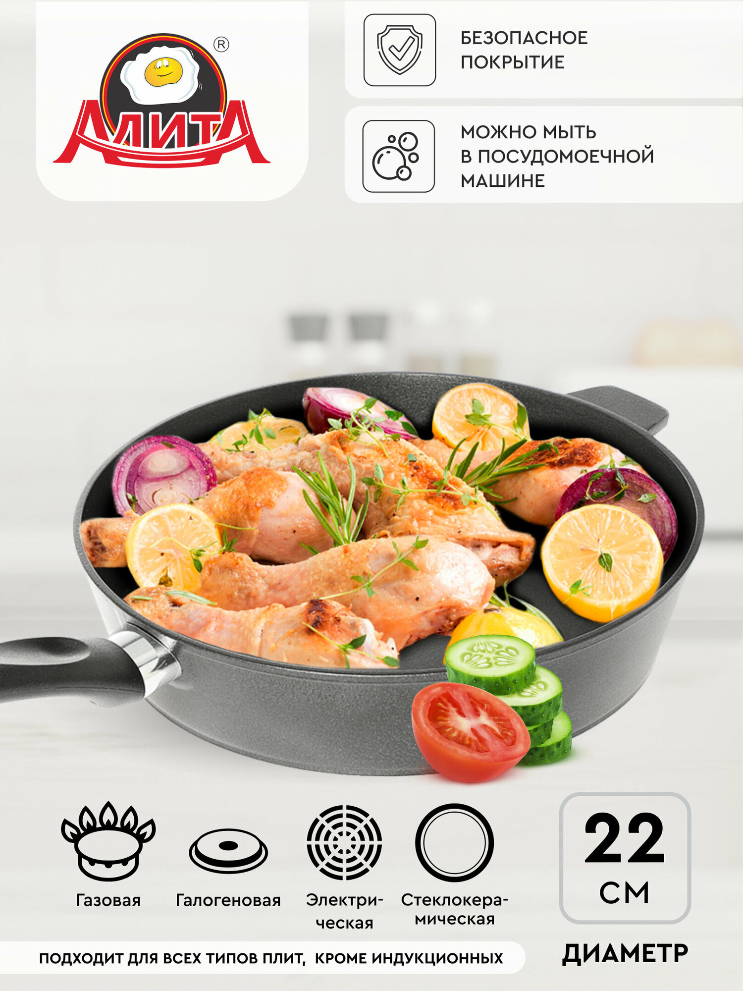 Сковородка Сковорода антипригарная 22 см глубокая литая алюминиевая с покрытием, Антрацит