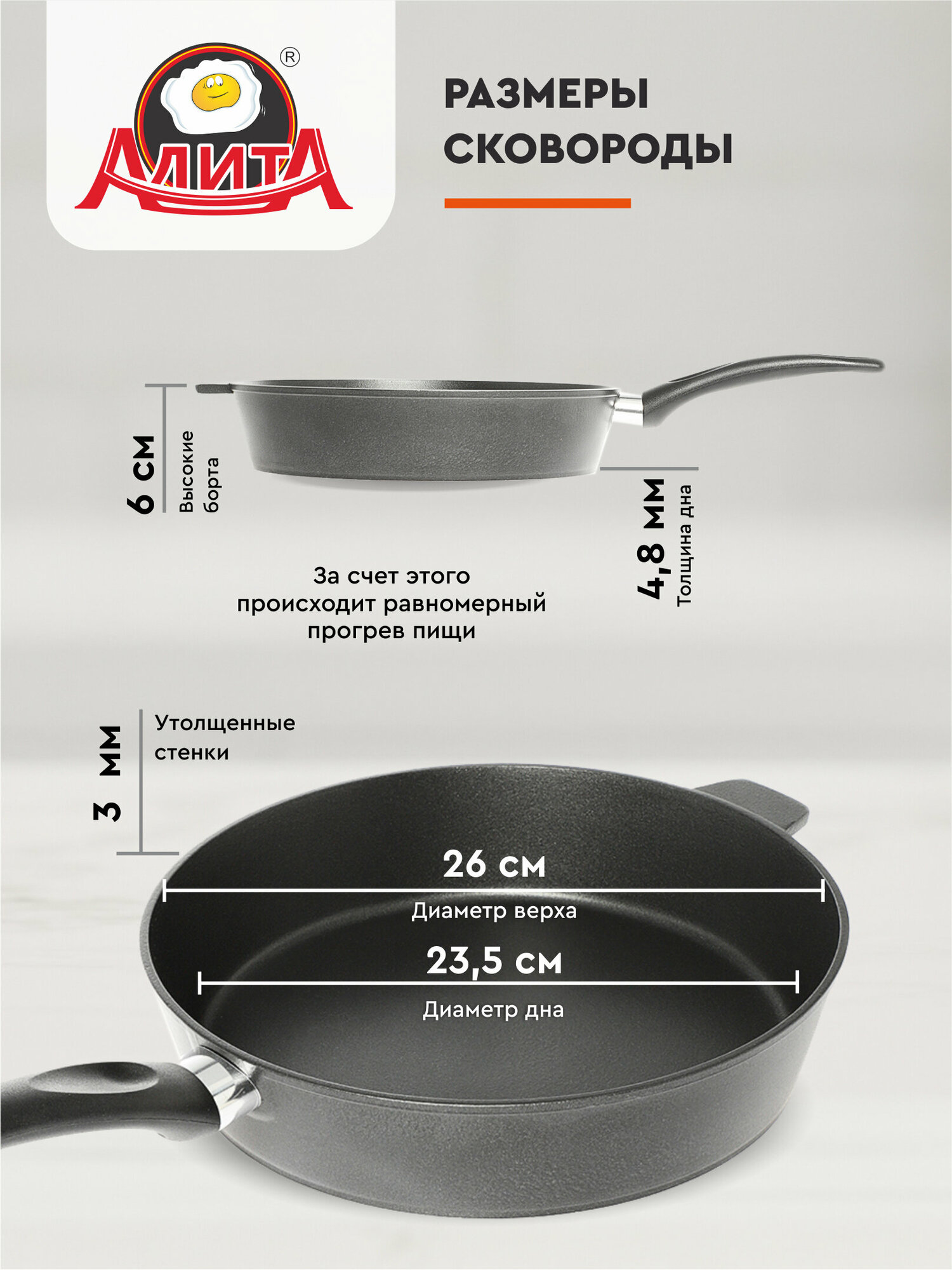 Сковородка Сковорода антипригарная 26 см глубокая литая алюминиевая с покрытием, Антрацит
