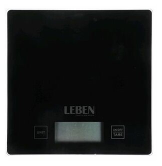 Весы кухонные электронные LEBEN, стеклянная платформа, максимальная нагрузка 5кг (точность измерения 1гр)