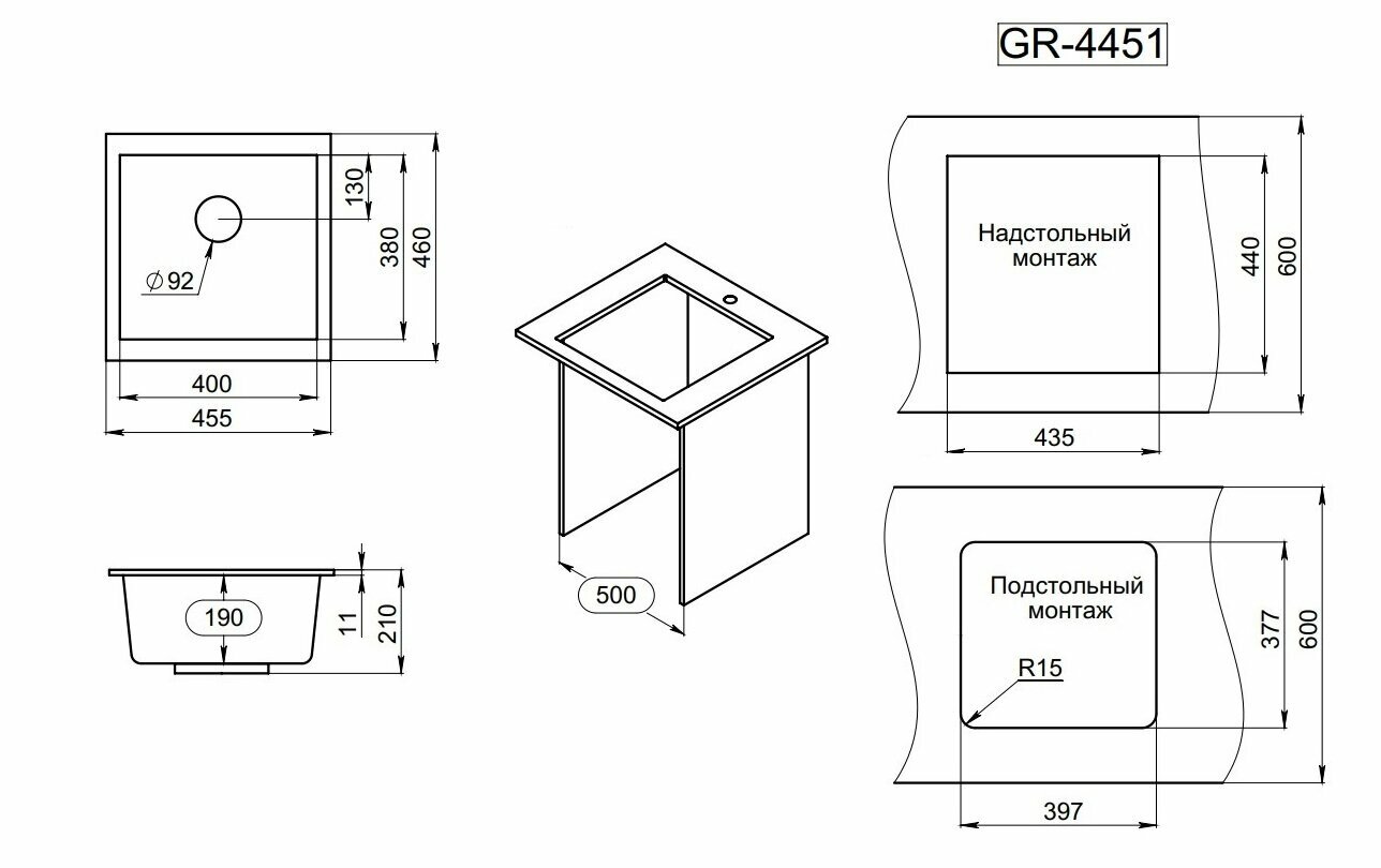 Кухонная мойка GR-4451 450*460мм шварц
