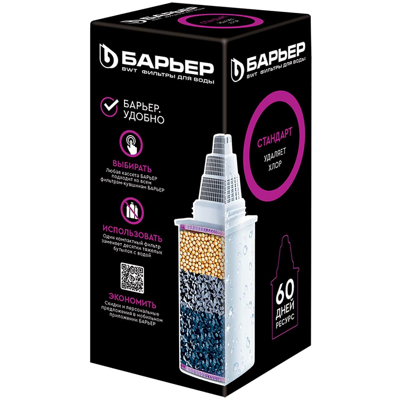 Лучшие цены. Высококачественная доочистка водопроводной воды без ярко выраженных признаков загрязнения отдельными веществами. Эффективная защита от хлора и хлорорганических соединений, пестицидов, нефтепродуктов. В январе 2007 года сменная кассета БАРЬЕР Стандарт (бывшая БАРЬЕР-4) получила сертификат соответствия Российского института потребительских испытаний (рипи) и вновь подтвердила его в декабре 2008 года. У многих из нас из-под крана течет прозрачная на вид вода, которую мы считаем чистой. Магазины в вашем городе.