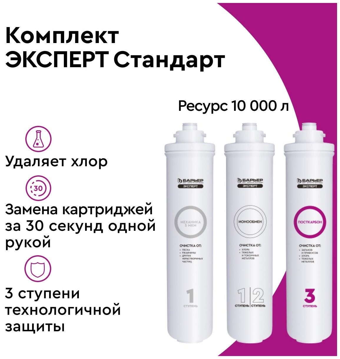 Комплект картриджей Барьер Эксперт Стандарт, фильтроэлементы для очистки воды