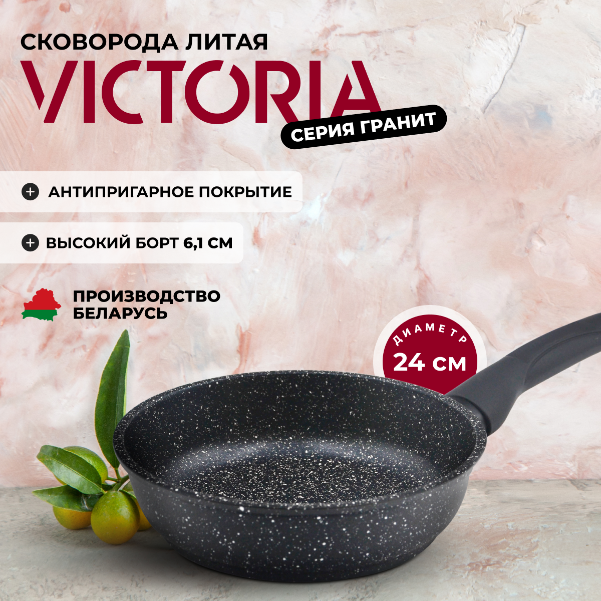 Сковорода VICTORIА G0024 24 см, черный гранит