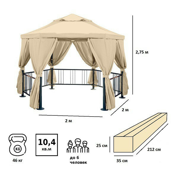 Тент садовый (свадебный) Green Glade 1080 2х2х2м (полиэстер) Бежевый(2х2х2м)