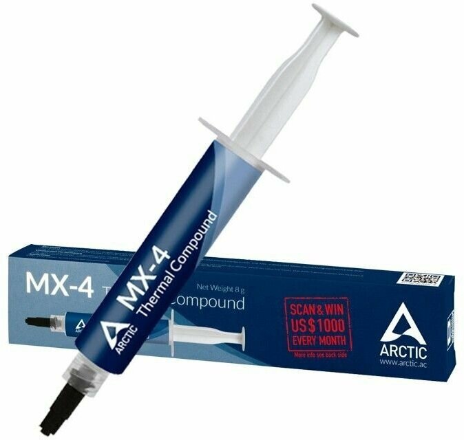 Термопаста ARCTIC MX-4 ACTCP00002B 4г, шприц, теплопроводность 8.5 Вт/мК, вязкость 870 пуаз, плотность 2.5 г/см³