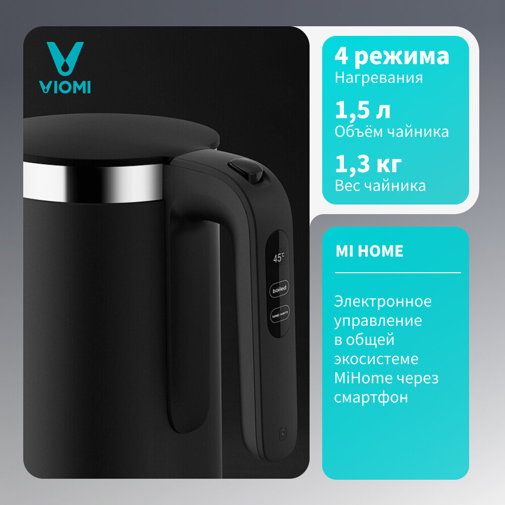 Viomi V-SK152B Smart Kettle Black Чайник, 1.5л, 1800Вт, черный