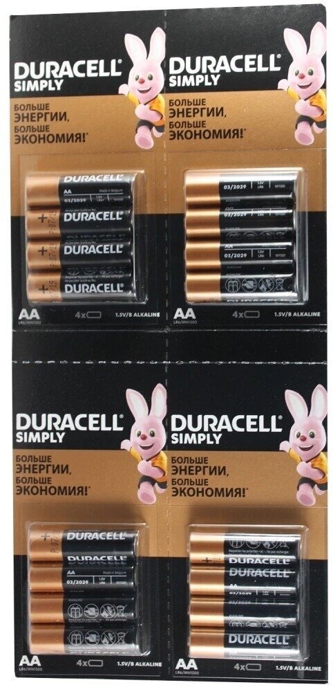 Duracell Батарейка алкалиновая Duracell Simply, AA, LR6-16BL, 1.5В, отрывной блистер, 4х4 шт.