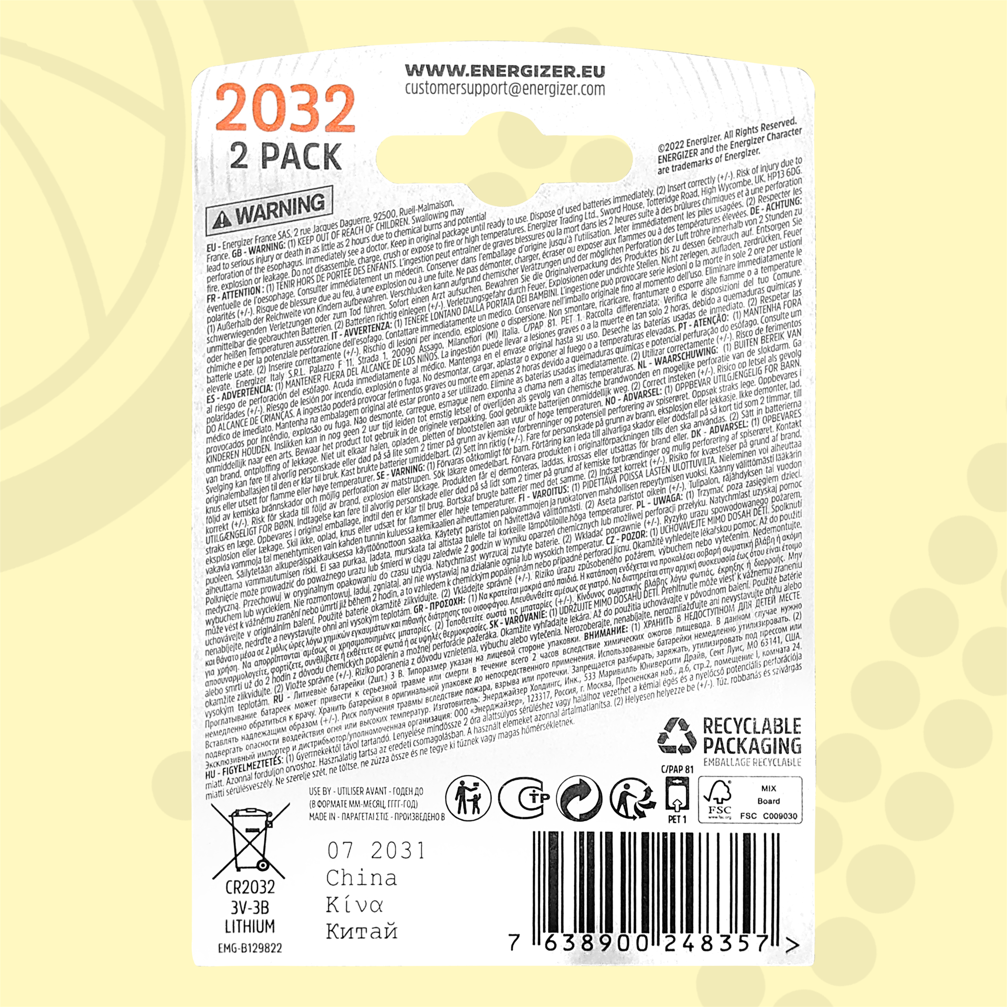 Батарейка Energizer CR2032, в упаковке: 2 шт.