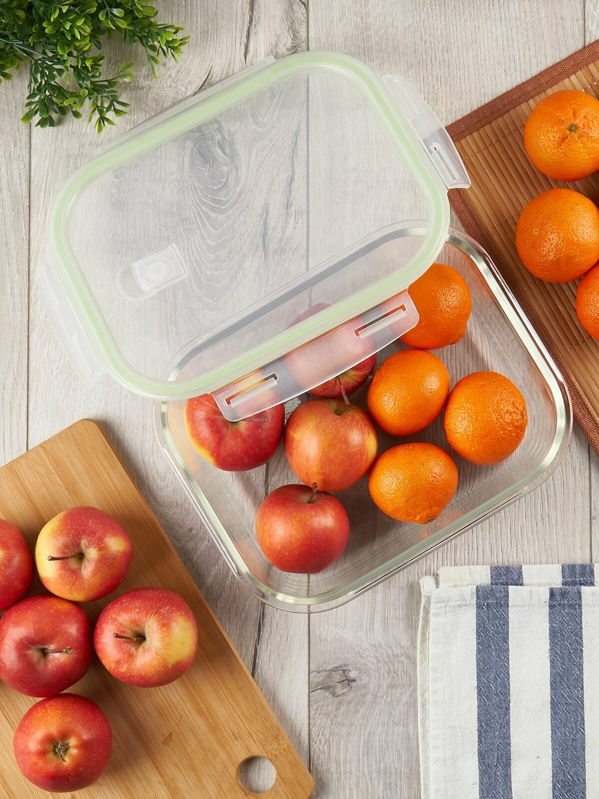 Пищевой контейнер Стеклянный пищевой контейнер для хранения еды Eley, прямоугольный, цвет: зеленый, 2,3 л