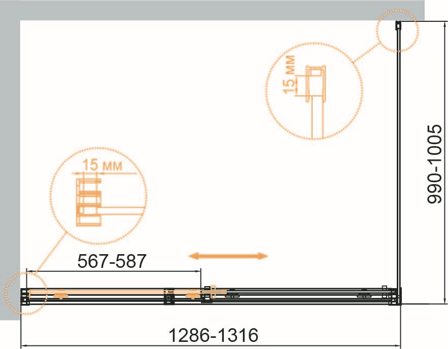 Душевая кабина Душевой уголок CEZARES DUET SOFT-AH-1-130/100-C-Cr