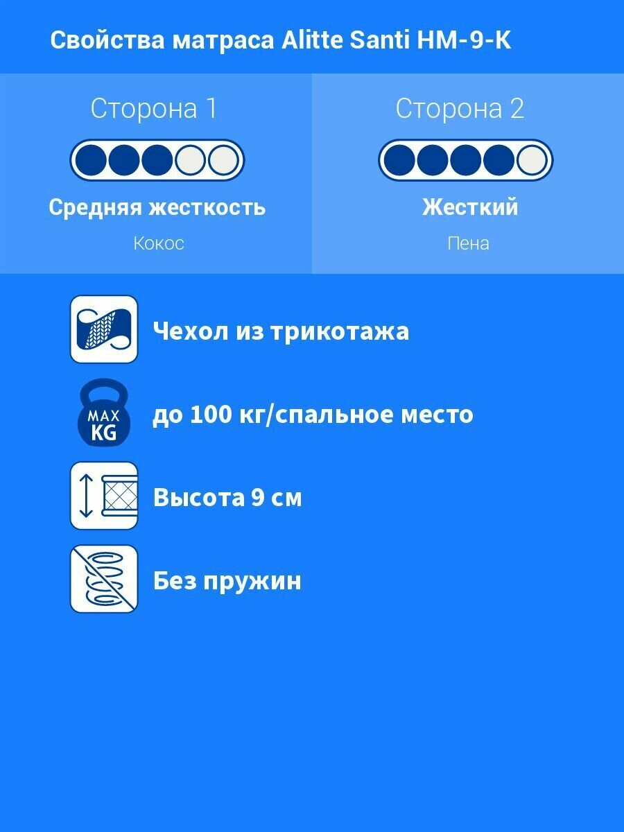 Матрас Alitte Santi HM-9-K, Размер 95х205 см 17 182 ₽ Подробнее