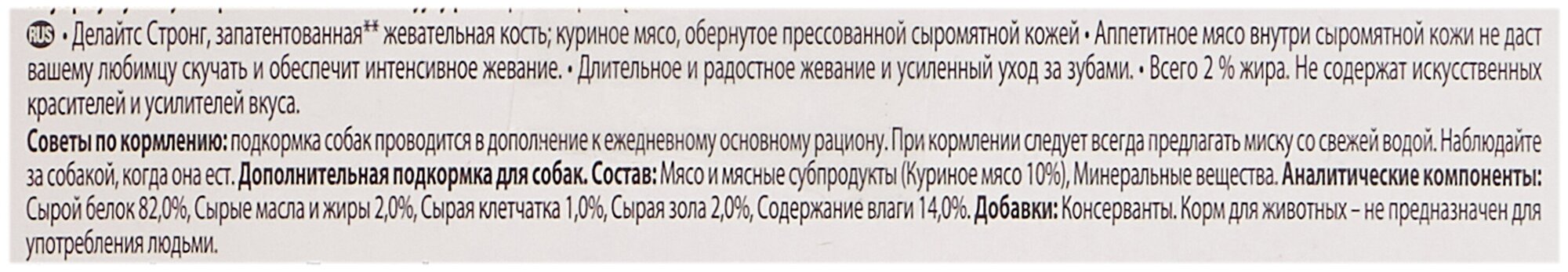 | Ингредиенты | сыромятная кожа с курицей / минералы / |