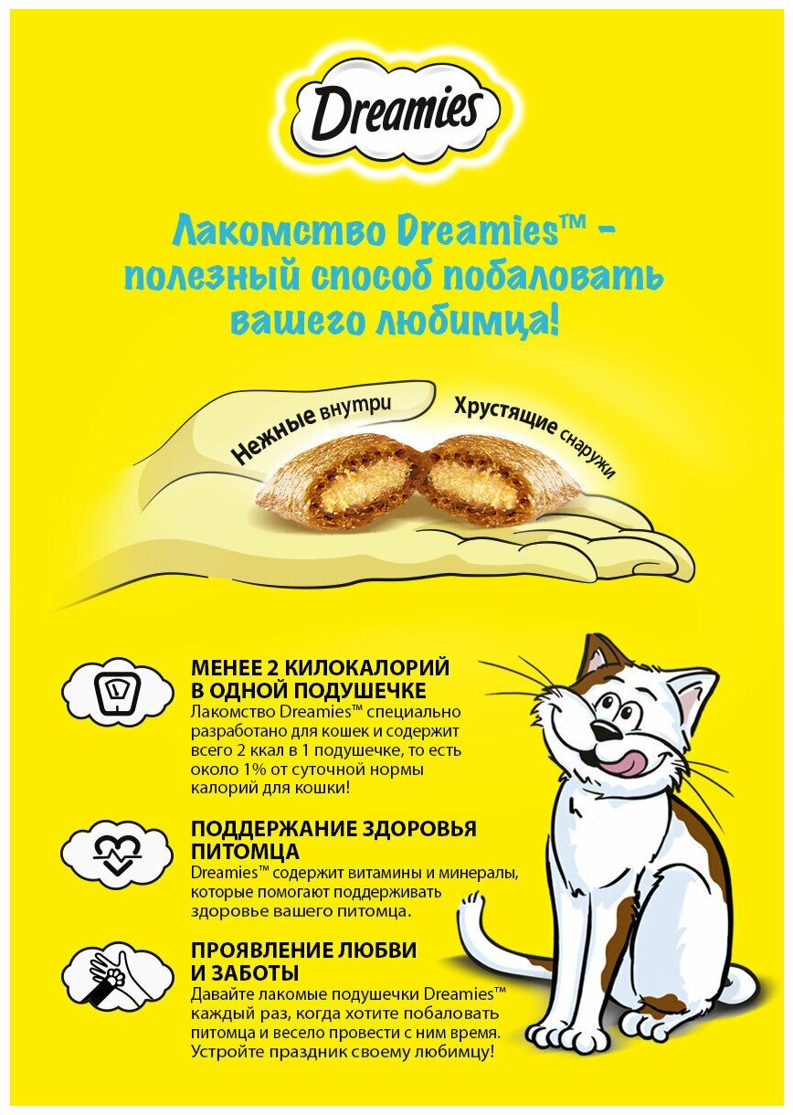 Лакомство для кошек DREAMIES лакомые подушечки с лососем 60г