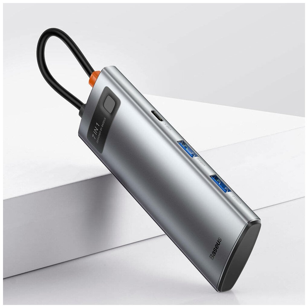 Хаб Baseus Metal Gleam Series 7-in-1 Multifunctional Type-C HUB Docking Station Gray (WKWG020113)